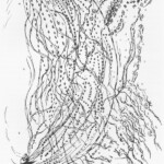 What the viewer catches is just a sliver in the evolution Will sets in motion, or which sets Will into motion. I don’t see the skeleton in his work because there isn’t one. Gossamer bone if anything. Whole worlds come to roost in his drawings. They bring to us flinted glimmer and nest-worthy cosmologies